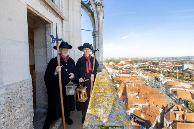 Prohlídka města s nočním hlídačem a výstupem na farní věž: