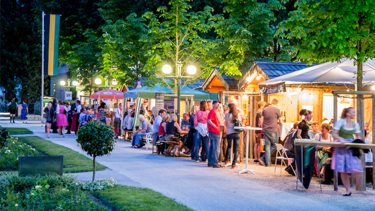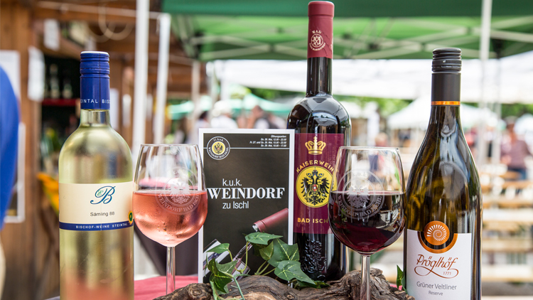 „Wasser macht weise, glücklich der Wein. Drum trinke beides, um beides zu sein“… das Weindorf ist der Treffpunkt für Freunde edler Tropfen, Geselligkeit und Unterhaltung im eindrucksvollen Kurpark mitten in Bad Ischl.