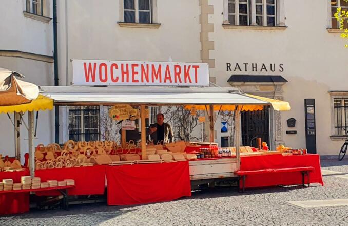 Der Wochenmarkt findet jeden Donnerstag statt. Im Falle eines Feiertages wird er auf