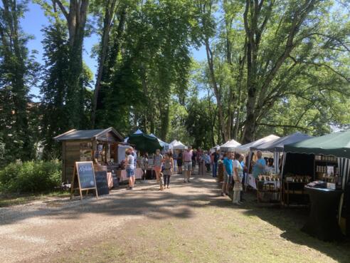 Das Angebot reicht von antiken Bilderrahmen, Ölgemälden, Schriften, Münzen, Büchern bis hin zu Porzellangefäßen, Blech- und Holzspielzeug sowie Möbelstücken aus längst vergangenen Zeiten. Zwischen den Markteinkäufen lädt der kulinarische Gastgarten beim Gartenpavillon des Schlosses zum gemütlichen Verweilen ein.