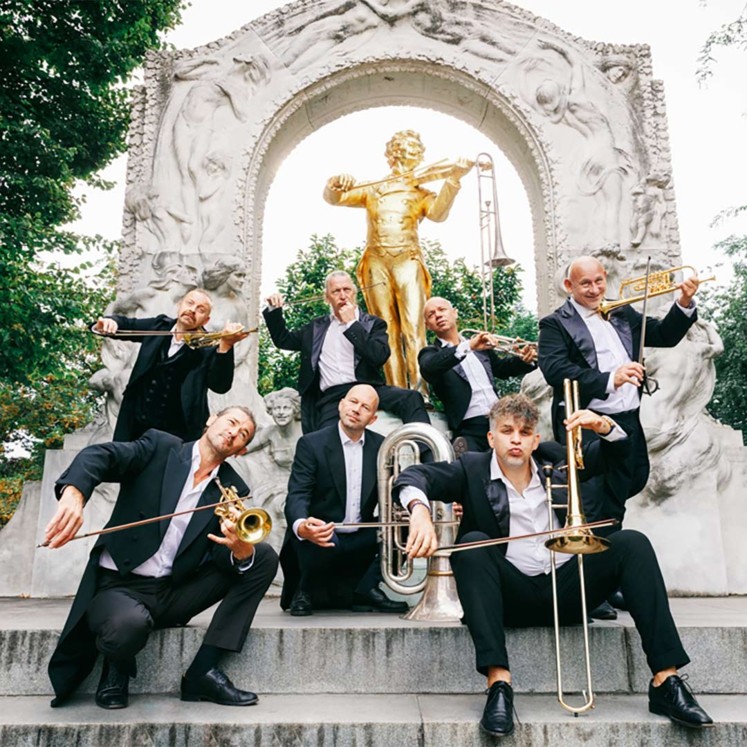 For more than thirty years now, the seven musicians have been moving back and forth between Johann Strauss and Frank Sinatra, between Shostakovich and Prince or even passionately from Schubert to their Queen cousins with the greatest of ease and their flashing wind instruments. She cares as little for the solemn grandeur of the one as she does for the supposed banality of the other. But Strauss - whom Brahms, Wagner and Verdi, as well as the craftsmen and the girls from the suburbs (and even a Gershwin) adored - was the forefather of nonchalant dalliance between the chairs. Strauss was the first to produce hits by the meter, he hired an arranger so that he could work faster and realized that together with his brothers he could reproduce his sound worldwide. He was the first to undercut E and U and became a mass phenomenon as the Waltz King - the tills never rang sweeter. In Strau$$, Mnozil Brass really reveal everything about Strau$$. Even the last thing. In the end, all that remains is the naked truth.