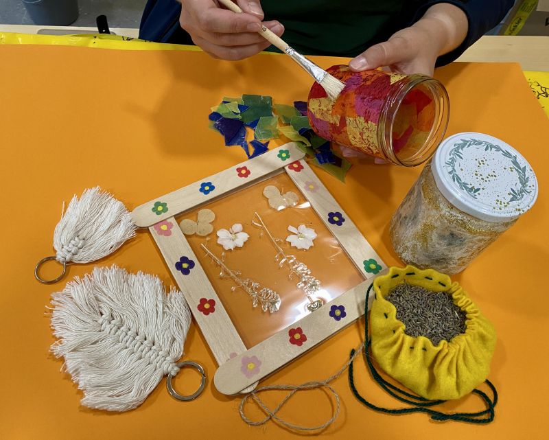 Große Einmachgläser können bunt, mit Tonpapierfiguren oder herbstlich gestaltet werden.