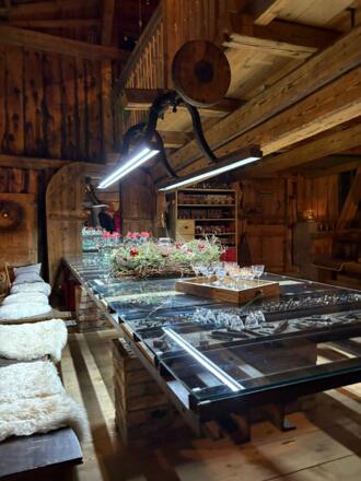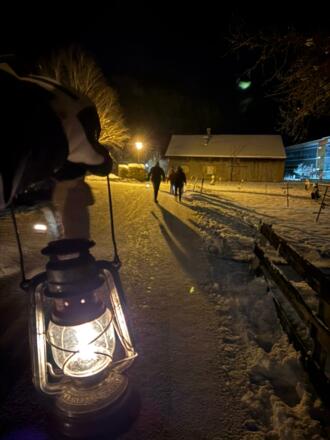 Abendliche Laternenwanderung durch Bezau mit Besuch im "Deerofo". In diesem liebevoll restaurierten Stadel, der früher gemeinschaftlich vom ganzen Dorf als Trockenofen genutzt wurde, klingt die Wanderung bei einem kleinen Umtrunk aus. Besonders gut für Familien geeignet!