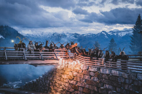“Krampus" is the untamed, shaggy spirit that accompanies St. Nicholas. Their traditional costumes and masks are elaborately handcrafted. “Perchten" are wild pagan spirits widespread throughout the Austrian and Bavarian region. They carry bells and other loud instruments to dispel the winter. Nowadays the originally different Krampus and Perchten customs have merged into one in many regions.