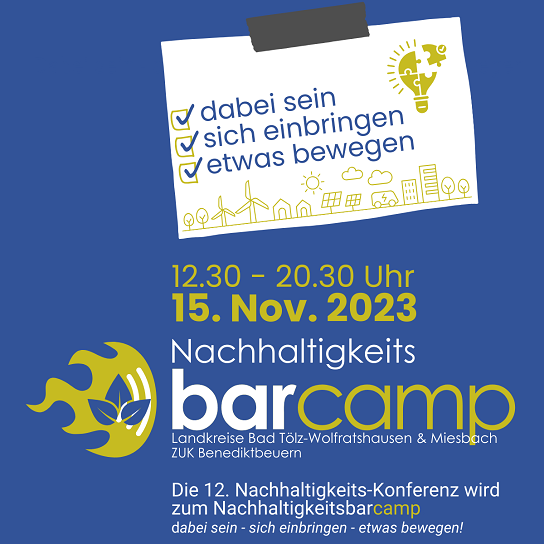 Die besten Gespräche entstehen oft beim Netzwerken oder an der Kaffeemaschine, diese Idee greift das BarCamp auf: In einem offenen, interaktiven und kommunikativen Veranstaltungsformat werden verschiedene Themen rund ums Thema Nachhaltigkeit in mehreren Sessions oder Workshops diskutiert. Erfahrungsaustausch, miteinander Diskutieren und daraus etwas entstehen lassen, sind die Zielsetzung.Infos und Anmeldung ab sofort auf www.nachhaltigkeit-oberland.de. Alle an Nachhaltigkeit in der Region Interessierten sind herzlich zur Beteiligung eingeladen, die Teilnahme ist kostenlos.Wer steckt dahinter? Ausrichter des NachhaltigkeitsBarCamps ist das WirtschaftsForum Oberland e.V. in Zusammenarbeit mit der REO Regionalentwicklung Oberland, der Bürgerstiftung Energiewende Oberland, der Metropolregion München, TIZIO Transfer- und Innovationszentrum im Oberland der Hochschule München, Tölzer Land Tourismus und Tegernseer Tal.