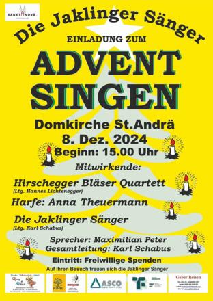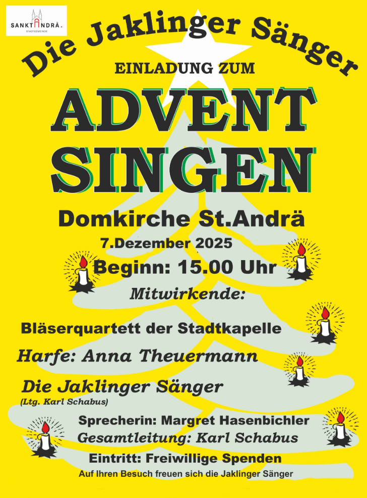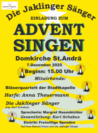 Die Jaklinger Sänger laden herzlich zum traditionellen Adventsingen in die Domkirche St. Andrä ein.