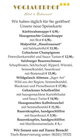 Tischreservierung unter der Tel: +43 6243 35321