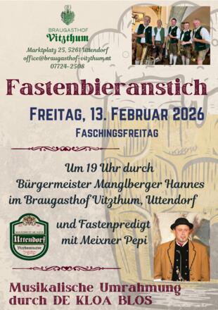 Jährlich findet unser traditioneller Fastenbieranstich (am ersten Freitag nach Aschermittwoch) mit Fastenpredigt und musikalischer Umrahmung statt. Unser Fastenbier "Vizedominator" kann während der gesamten Fastenzeit frisch vom Fass im Braugasthof genossen werden. Für Zuhause erhalten sie diesen bei uns auch in Flaschen.