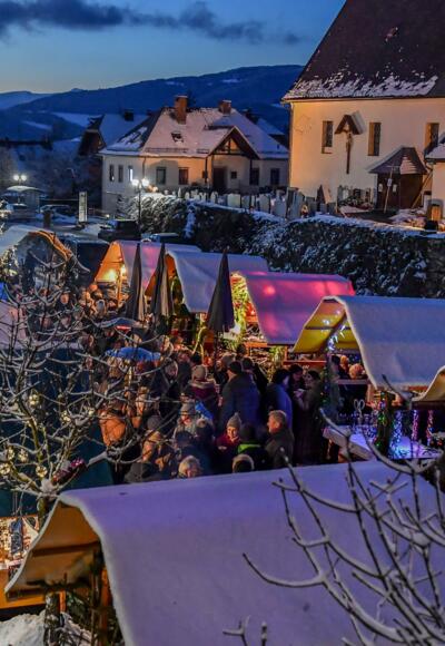 Der Nikolo der Wolfsberger Bürgerfrauen kommt auf den Hohen Platz und verteilt kleine Gaben