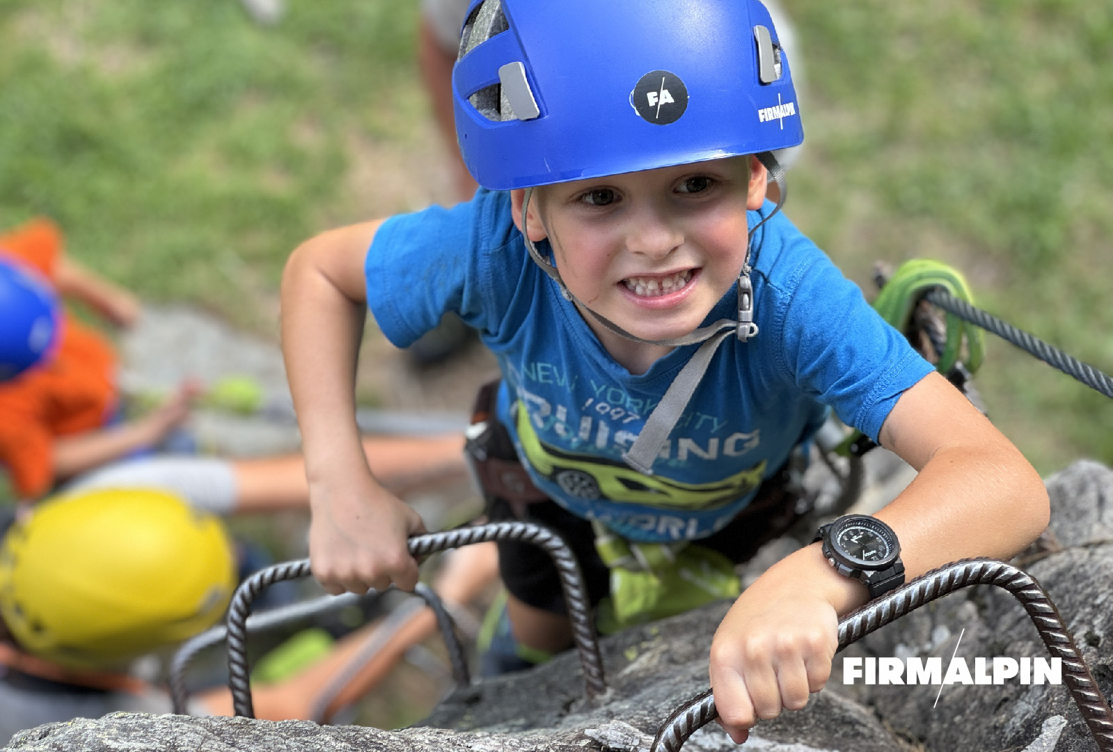 Im Anschluss geht es über einen einfachen Klettersteig hoch hinauf. Wir lernen die richtige Sicherungstechnik sowie ein effizientes Fortbewegen. Die besonders Mutigen können sich dann von der höchsten Stelle der Wand abseilen — natürlich stets gesichert und unter dem wachsamen Auge unseres Bergführers.
