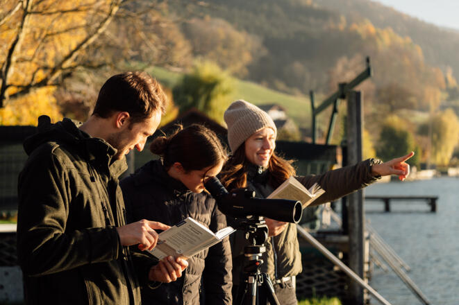 Entlang des Seeufers suchen wir nach Enten, Tauchern und Möwen. Anschließend spazieren wir am Wanderweg in ein Waldstück und hoffen dort auf Spechte, Meisen und Co. Am Weg dorthin finden wir entlang des Baches mit etwas Glück sogar eine Gebirgsstelze, einen Eisvogel oder eine Wasseramsel.
