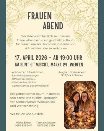 - Frauenabend mit Marion Ellmer und Teresa Haidbauer, Freitag, 17. April 2026, 19.00 Uhr
