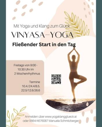 - Vinyasa-Yoga mit Manuela Schmitzberger, 10., 24. April, 8., 22. Mai und 12.,26. Juni 2026, immer von 9.00 bis 10.30 Uhr
