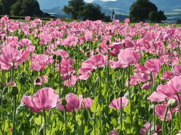 Besonders schön ist es zu dieser Zeit, wo die ringsum gelegenen Mohnfelder in Blüte stehen. Hier lohnt es sich die Kamera bereitzuhalten um besondere Momente inmitten der Blütenpracht einzufangen.