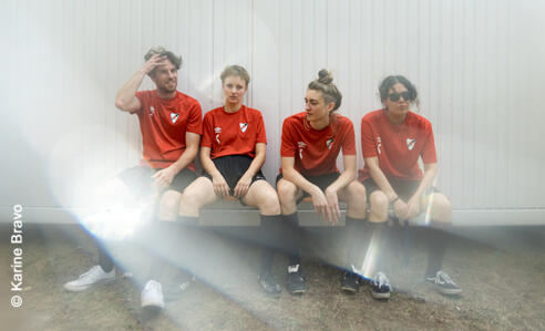 Kapa Tult, bestehend aus Inga (Voc, Git), Robin (Keys), Angi (Drums, Voc) und Neu-Bandmitglied Raphael (Bass), prangern die banalen Missstände unserer Zeit an: Zu viele schlechte Hollywoodfilme, zu wenig Therapieplätze. Außerdem: Keine Lecktücher in Supermärkten, Bootycalls, die sich als Carecalls enttarnen und Freund:innen, die immer busy sind - "weil Alle die Welt oder sich selbst verbessern".