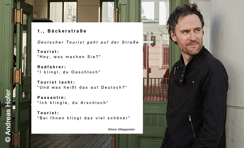 Andreas Rainer, bekannt als der Wiener Alltagspoet, sammelt Zitate und Skurrilitäten aus dem Wiener Alltag für über 300.000 Follower auf Social Media. Sein Blick in der Stadt der großen Bühnen richtet sich vor allem auf die kleinen Gassen, Kaffeehäuser, U-Bahnstationen und Supermärkte, in denen sich tagtäglich Komödie und Tragödie die Hand geben.