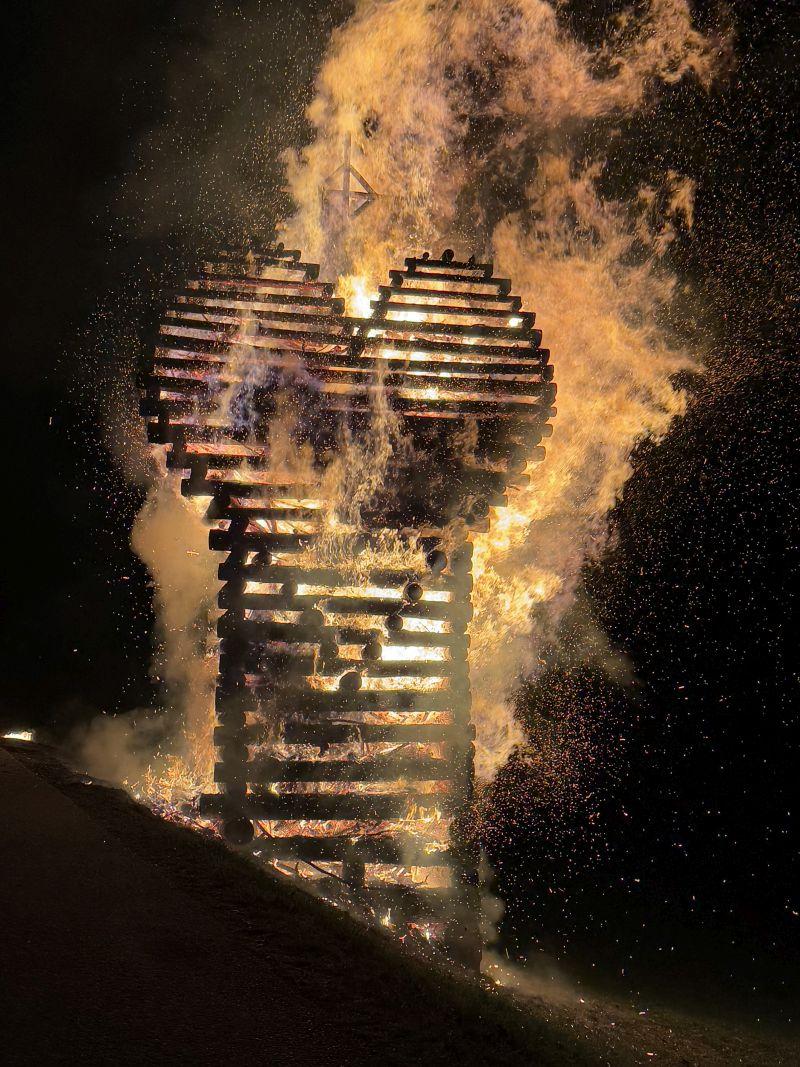 Das Osterfeuer wird traditionell nach der Auferstehungs-Feier in der Kirche von den jungen Lessachern mit dem geweihten Feuer entzunden.