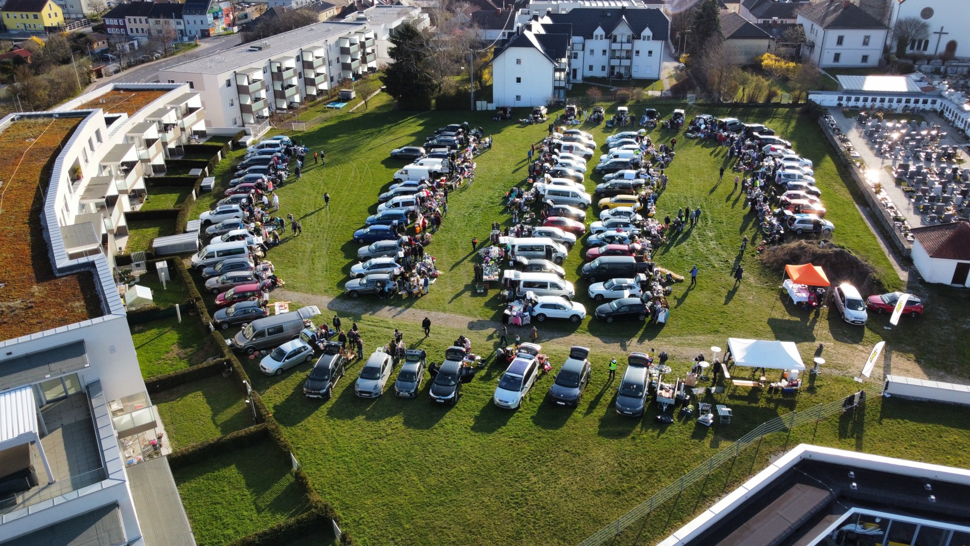 Für einen Vormittag wird die Parkplatzfläche zum Tauschbasar, auf dem direkt aus dem Kofferraum des Autos ver- und eingekauft werden kann. Verkäuferinnen und Verkäufer können von Spielsachen über Kleidungsstücke bis hin zu Antiquitäten und Deko alles anbieten.