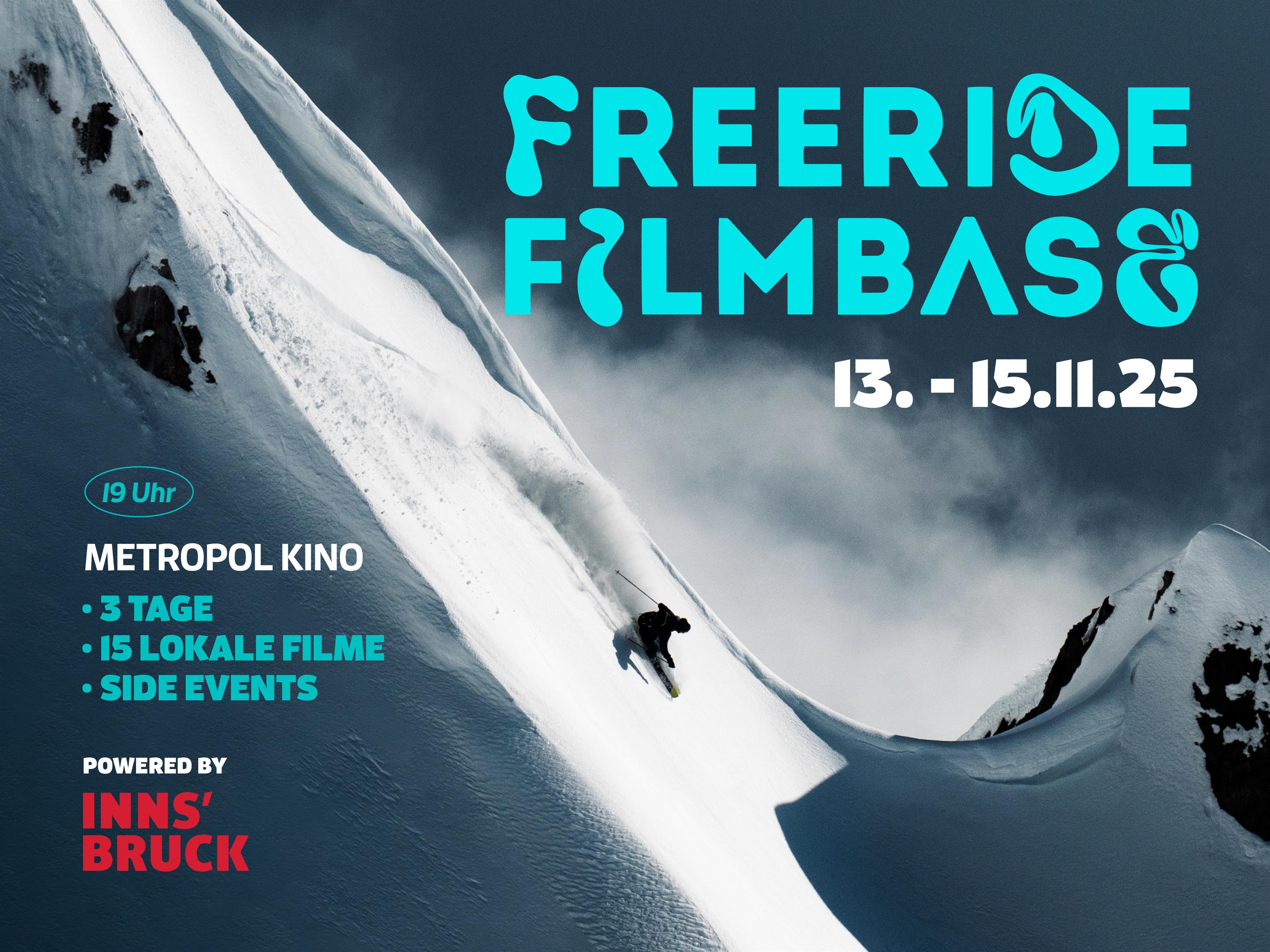 Die Freeride Filmbase als jährliche Feier des Innsbrucker Freeridefilms, zeigt von 13.11. – 15.11.2025 die neuesten Filme der Szene im Innsbrucker Metropol Kino im größten Kinosaal Westösterreichs. Neben dem Filmprogramm gibt es spannende Sidevents und Workshops.