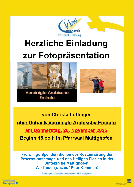 Beginn 15.00 Uhr im Pfarrsaal Mattighofen