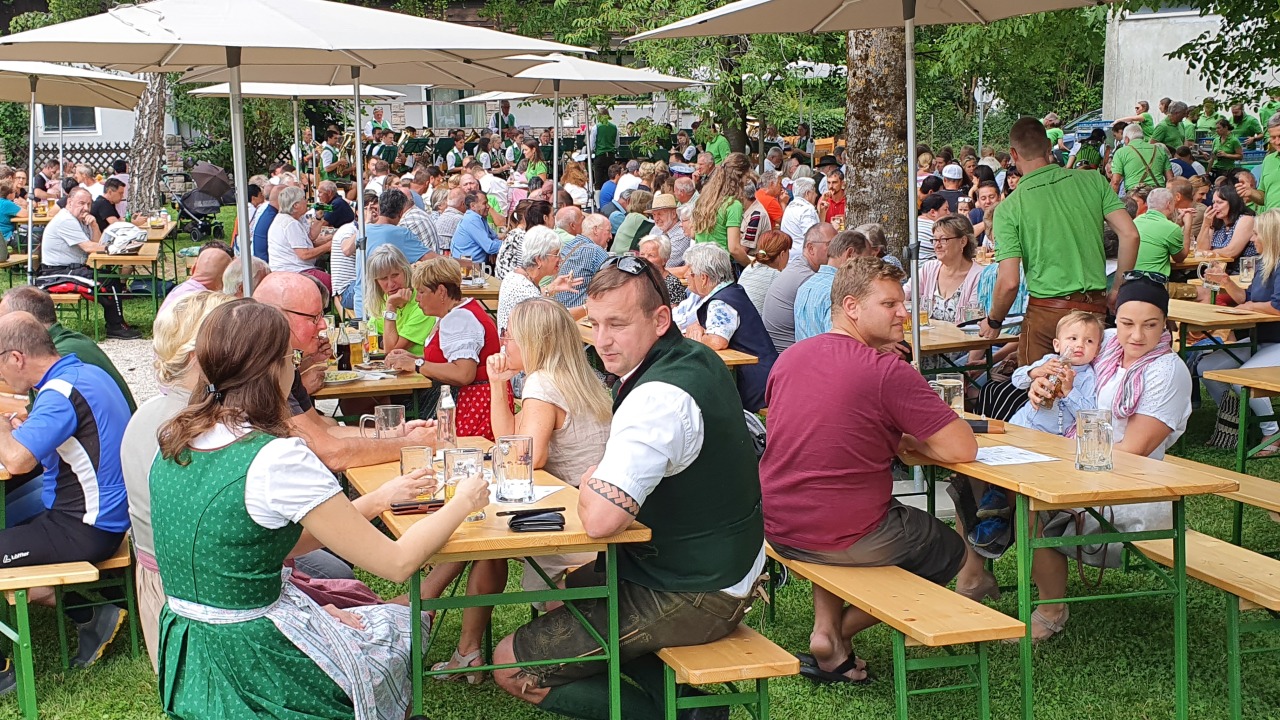 Musikalische Unterhaltung unter dem kühlenden Schatten der Bäume im Gemeindegarten.