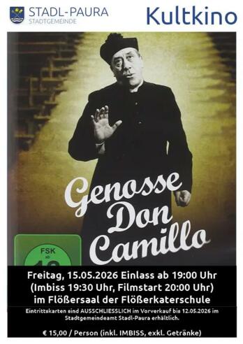 Eintrittskarten sind AUSSCHLIESSLICH im Vorverkauf bis 12.05.2026 im Stadtgemeindeamt Stadl-Paura erhältlich.