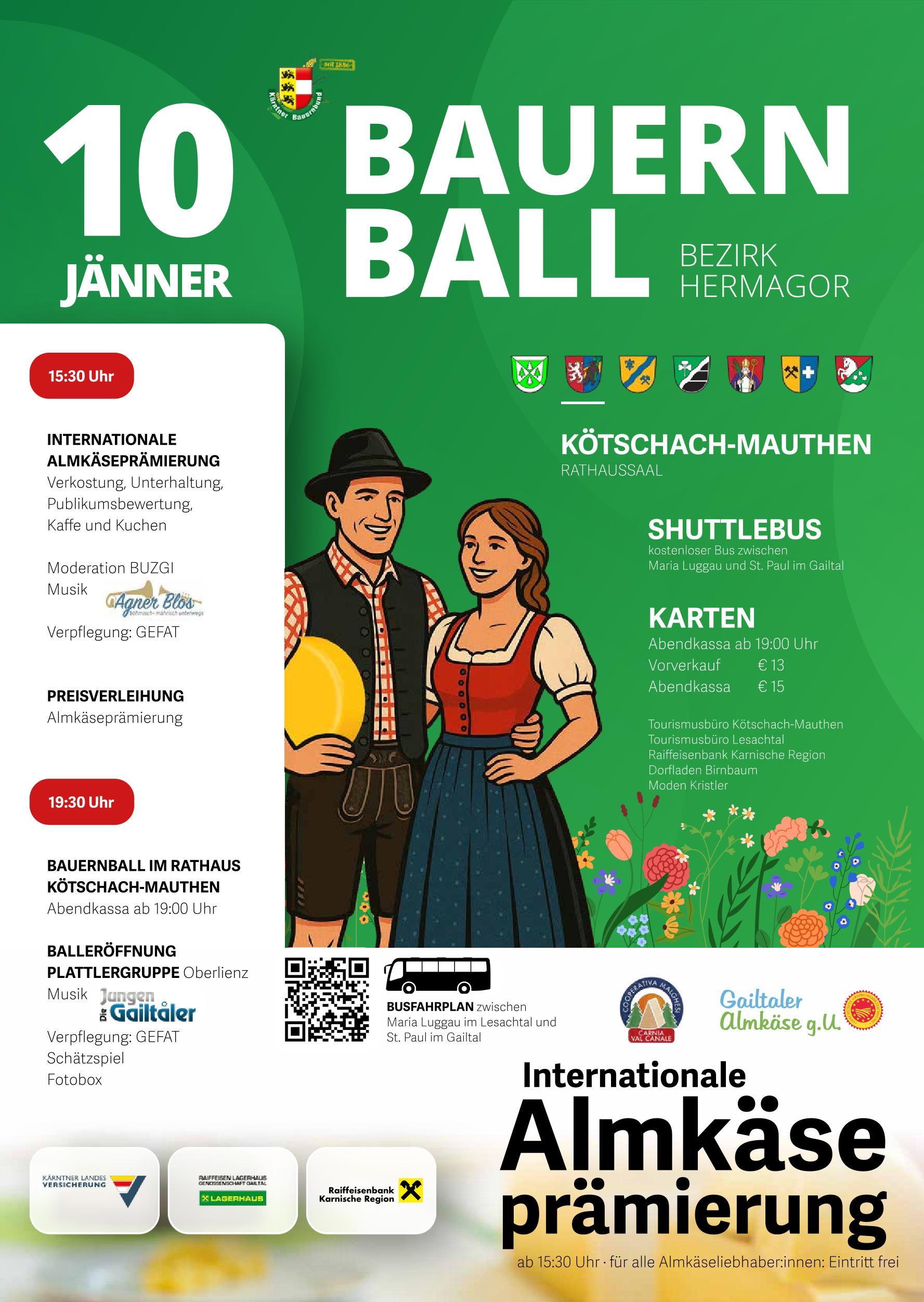 Balleröffnung: Plattlergruppe Oberlienz | Musik: Die jungen Gailtaler | Verpflegung: GEFAT