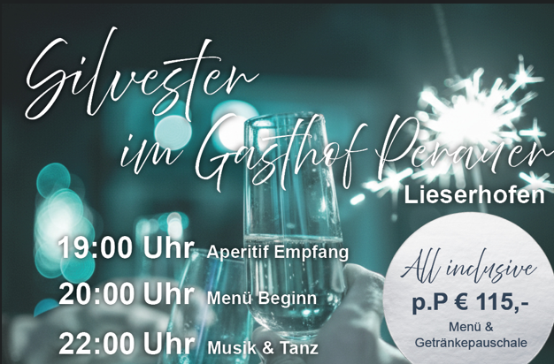 20:00 Uhr Silvestermenü - All inclusive € 115,- inkl. Menü und Getränkepauschale