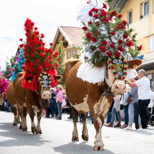 Die Almbauern von Itter werden traditionell um die Mittagszeit mit ihrem geschmückten Vieh durch das Dorf Itter ziehen und in ihre heimischen Ställe zurückkehren.