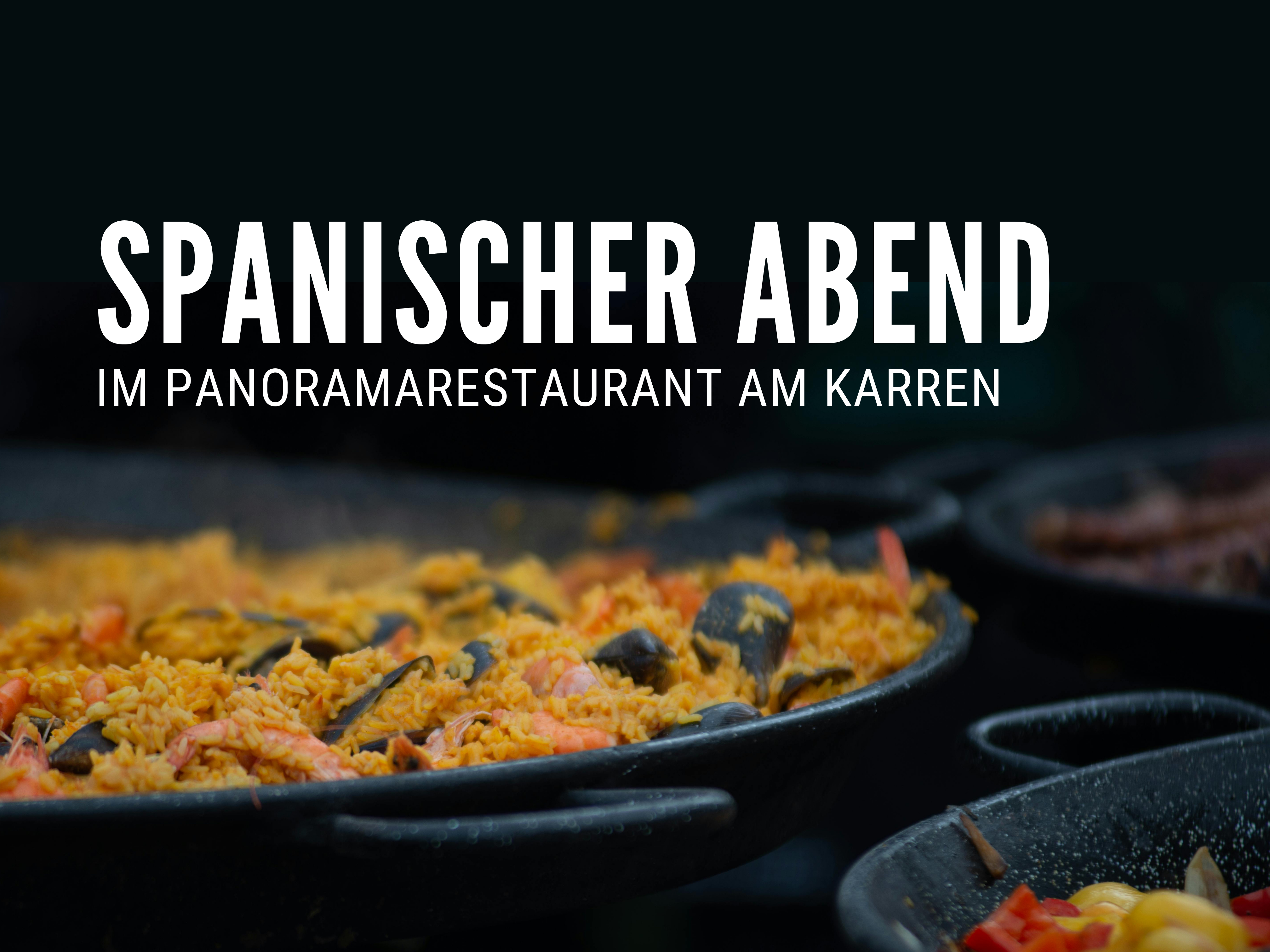 Die beliebten Themenabenden finden wieder statt! Das Panoramarestaurant am Karren bietet seinen Gästen jeweis ein großzügiges Themenbuffet an. Am 5. März 2026 reisen Sie kulinarisch nach Spanien. Es erwartet Sie ein vielfältiges und abwechslungsreiches Themenbuffet mit allerlei spanischen Spezialitäten.