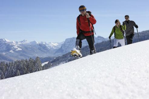 Entdecken Sie die bezaubernde Winterlandschaft rund um Warth am Arlberg auf sanfte und entspannte Weise. Beim Schneeschuhwandern genießen Sie die Ruhe der Natur und hinterlassen Ihre eigenen Spuren im frischen Schnee.