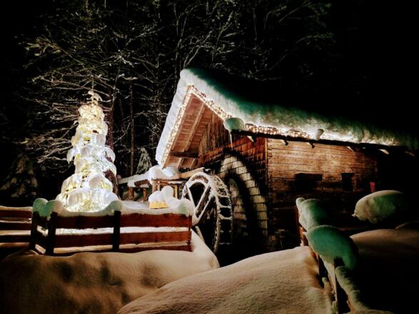 Mitten im idyllischen Dorf breitet sich eine festliche Atmosphäre aus, wenn wir bei geselligem Beisammensein selbstgemachte Köstlichkeiten und warme Getränke genießen, weihnachtlicher Musik lauschen und traditionelle Weihnachtsdekoration bestaunen.