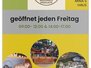 jeden Freitag 9 bis 12 und 14 bis 17 Uhr geöffnet! Verkauf von regionalen Produkten!