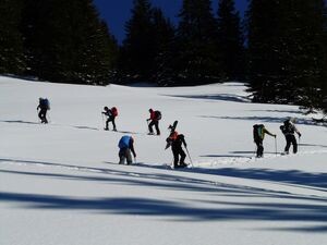 Tourengeher: 400 Hm, 1,4 km Länge, ca. 45 Gehminuten. Almboden