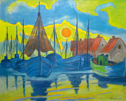 Alongside Dresden and Berlin, fishing villages on the Baltic coast were his most important creative locations. From 1913, his works were presented to the Berlin public in the Fritz Gurlitt art salon. Wolfgang Gurlitt, owner of the gallery since 1907, also supported Pechstein's trip to the South Seas. On the Palau Islands, the expressionist painter sought a life in harmony with nature, but the First World War put an early end to his adventure. After the war, Pechstein found new creative energy in Berlin. In 1937, over 500 of his works were confiscated as part of the National Socialists' "Degenerate Art" campaign. Motifs painted from memory from his South Seas trip reappeared in bright colors in his late work.