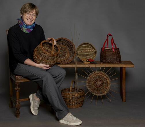 Der traditionellen Flechttechnik mit Weidenruten hat sich Hildegard Neumaier verschrieben. Unter dem Leitspruch „Hildegard – wie fia di gmocht“ erzählt sie mit ihren Werken vom Wert regionalen Handwerks und von der Idee, dieses mit schlichten Formen und feinen Details in die Gegenwart zu holen. Die Körbe und Taschen, die im mük ausgestellt werden, sind wertvolle Unikate, schön und langlebig. „In meinen Arbeiten wird die Natürlichkeit der Weide spürbar – ob in funktionalen Stücken oder in dekorativen Objekten. Die Weide ist biegsam und lebendig und behält doch ihren ganz eigenen Charakter“, erklärt Hildegard Neumaier. Sie verbindet mit dem Naturmaterial Selbstbewusstsein und Lebensfreude.