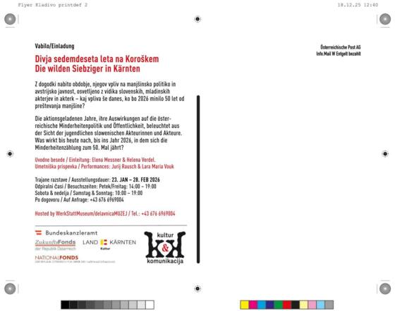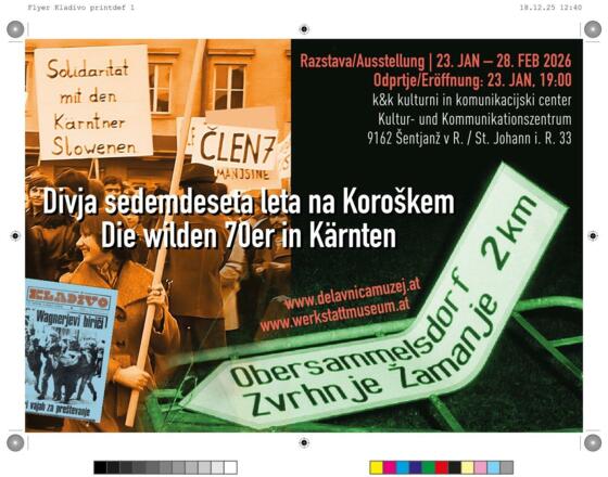 Aufschriftenkampagnen, Protest-, Solidaritätsdemonstrationen, Kunstinterventionen, mobilisierende Dispute im Land und darüber hinaus: Wie die slowenische Studierenden- und Jugendbewegung – inspiriert von der Zeitschrift KLADIVO – in den Siebzigerjahren der deutschnational dominierten Kärntner Minderheitenpolitik widersprochen hat; wie sie die slowenische Szene aus der Lethargie gerissen, einen kulturpolitischen Aufbruch angestoßen und die österreichische demokratische Öffentlichkeit geweckt hat. Wie ihr das gelungen ist. Was die Voraussetzungen dafür waren. Was sie bewirkt hat. Das ist Thema dieser Ausstellung, geschildert vor allem aus der Sicht der unmittelbaren Akteurinnen und Akteure. In Blitzlichtern wird die dichte, aktionsgeladene Periode der Siebzigerjahre beleuchtet. Sie hat das Denken vieler Menschen im Bundesland Kärnten beeinflusst und verändert, weit über die Landesgrenzen gewirkt. Und war erfüllt von radikal-demokratischem Einsatz für die Umsetzung des antifaschistischen, dem Minderheitenschutz verpflichteten Auftrags des Österreichischen Staatsvertrags von 1955.