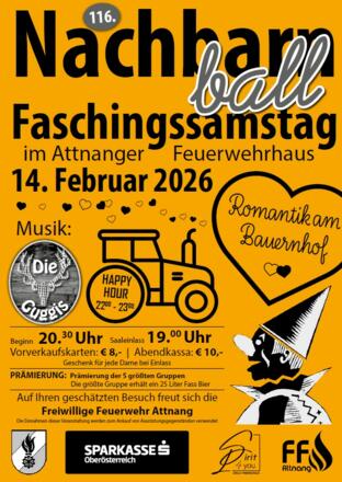 | Preisinformation | Vorverkaufskarten: € 8,- bei allen Feuerwehrmitgliedern, Tourismusbüro Attnang und im Haaratelier Astrid Hofmann erhältlich Abendkassa: € 10,- |