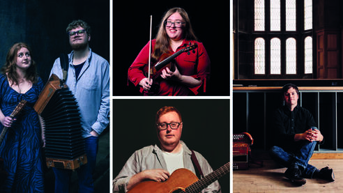Das zweite Ensemble führt der grandiose englische Akkordeon-Guru SAM MABBETT an. SAM kommt ursprünglich aus der britischen Morris Dance-Szene, erweiterte aber schon sehr jung sein keltisches Repertoire und konnte sich 2023 bis ins Finale der „BBC Radio Scotland Young Traditional Musician”-AWARDs hochspielen.