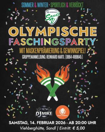 Während in Mailand um die Medaillen gekämpft wird, starten wir in Sandl unsere ganz eigenen Spiele. Der SV Sandl lädt zur OLYMPISCHEN FASCHINGSPARTY!