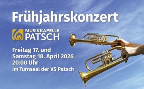 Die Musikkapelle Patsch lädt herzlich zum Frühjahrkonzert 2026! Eintritt frei - freiwillige Spenden erbeten!