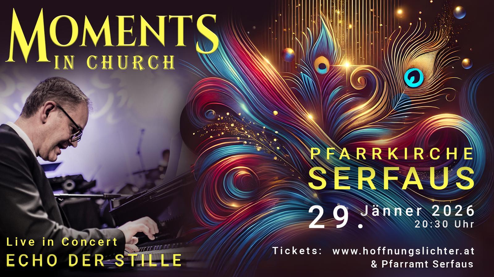 In der Pfarrkirche Serfaus entfaltet sich am 29. Jänner mit Moments in Church ein einzigartiges Konzerterlebnis. Musik und Wort verschmelzen zu einem Moment der Stille, Tiefe und Hoffnung.
