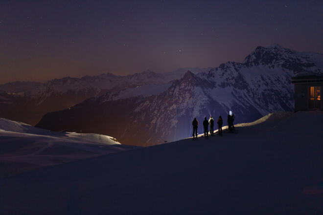 Spüren, wie die Natur im Skigebiet abends zur Ruhe kommt. Bei einer Jause auf dem Schafbergplateau den Sonnenuntergang erleben, Im Lichtkegel der Stirnlampe ins Tal abfahren. Skiexkursion mit technischer Einweisung zum Skitourengehen und informationen zum Skigebiet.