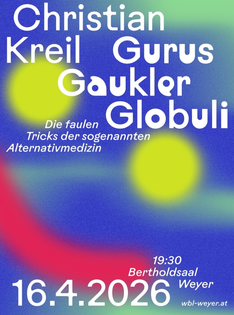 Die Weyrer Bürger*innen Liste lädt herzlich zum sechsten Vortrag ihrer erfolgreichen Veranstaltungsreihe ein. Diesmal widmet sich der bekannte Journalist und Buchautor Christian Kreil „den faulen Tricks der sogenannten Alternativmedizin“, wie er selbst sagt.