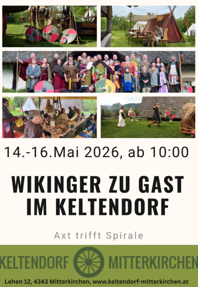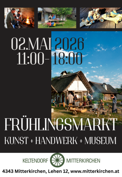 Am 28. März startet das Keltendorf Mitterkirchen in die neue Saison – und damit auch in ein spannendes Osterferienprogramm für die ganze Familie! An beiden Wochenenden finden kostenlose Führungen um 11:00 und 14:00 Uhr durch die rekonstruierte Siedlung statt, bei denen das Leben vor 2700 Jahren lebendig wird. Der Eintritt bleibt wie gewohnt. Bitte beachten: Materialkosten sind nicht im Eintritt enthalten. Die Aufsichtspflicht liegt während der Veranstaltungen bei den Eltern. |