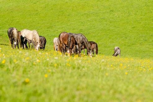 Das teils unebene Gelände stärkt Sehnen und Bänder. Jeder Schritt auf den Almwiesen fördert die Trittsicherheit. So wächst Kraft und Ausdauer ganz natürlich. Die ruhige Umgebung unterstützt die gesunde Entwicklung der jungen Stuten. Wer genau hinsieht, erkennt, wie aufmerksam sie ihre Umgebung wahrnehmen.