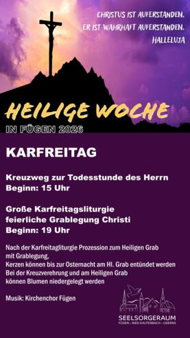 Um 15.00 Uhr Kreuzweg zur Todesstunde des Herrn. Um 19.00 Uhr große Karfreitagsliturgie mit feierlicher Grablegung Christi.