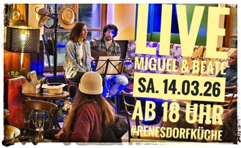 Miguel & Beate begeistern das Publikum in Renes Dorfküche mit wundervollen Gitarrenklängen und Gesang!