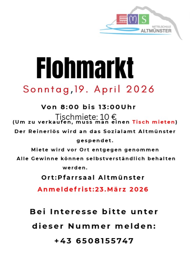 Am 19. April 2026 öffnet der Pfarrsaal Altmünster seine Türen für einen Tag voller bunter Vielfalt und spannender Funde. Stöbere durch liebevoll zusammengestellte Stände, entdecke besondere Einzelstücke und erlebe die Atmosphäre eines lebendigen Marktes.