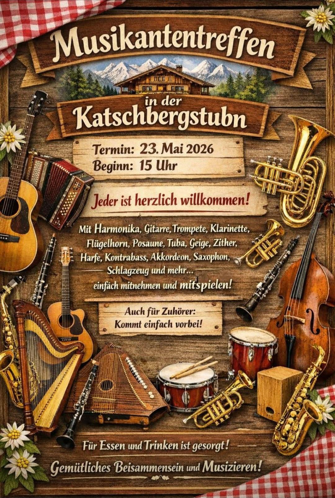 Mit Harmonika, Gitarre, Tromprete, Klarinette, etc. ... Musikinstrument mitnehmen und mitspielen.